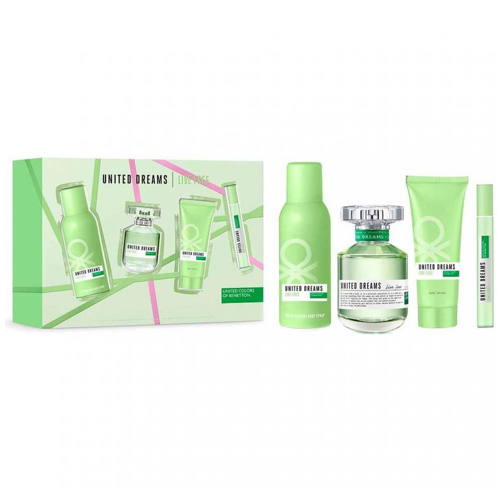 SET LIVE FREE EDT 80ML + DEODORANT 150 ML+ BODY LOTION 75ML+ PERFUMERO BENETTON PERFUME PARA DAMA
