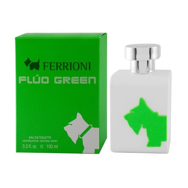 SET FLUO GREEN EDT 100ML + 2PIEZAS + 3 AMPOLLETAS FERRIONI PERFUME PARA CABALLERO