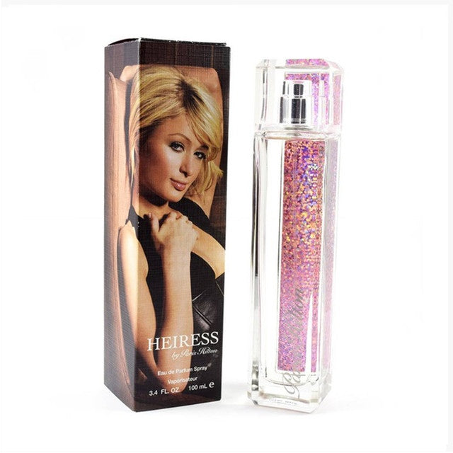 Heiress de Paris Hilton es una fragancia de la familia olfativa Floral Frutal para Mujeres. Heiress se lanzo en 2006. Las Notas de Salida son maracuya (fruta de la pasion), champana, durazno (melocoton), mimosa y naranja; las Notas de Corazon son granadina, madreselva, flor de tiare, ylang-ylang y jazmin de estrella; las Notas de Fondo son haba tonka, hojas de violeta y maderas blancas.