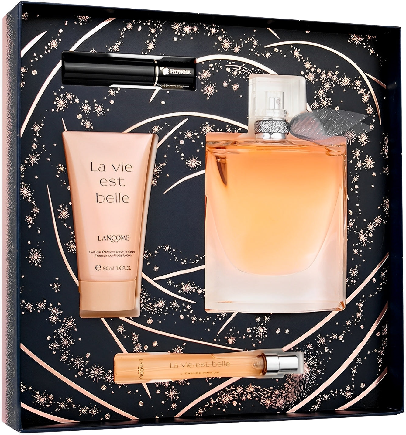 SET LA VIE EST BELLE EDP 100ML+CREMA CORPORAL 50ML+MASCARA PARA PESTAÑAS HYPNOSE 2ML+PERFUMERO 10ML LANCOME PARA DAMA